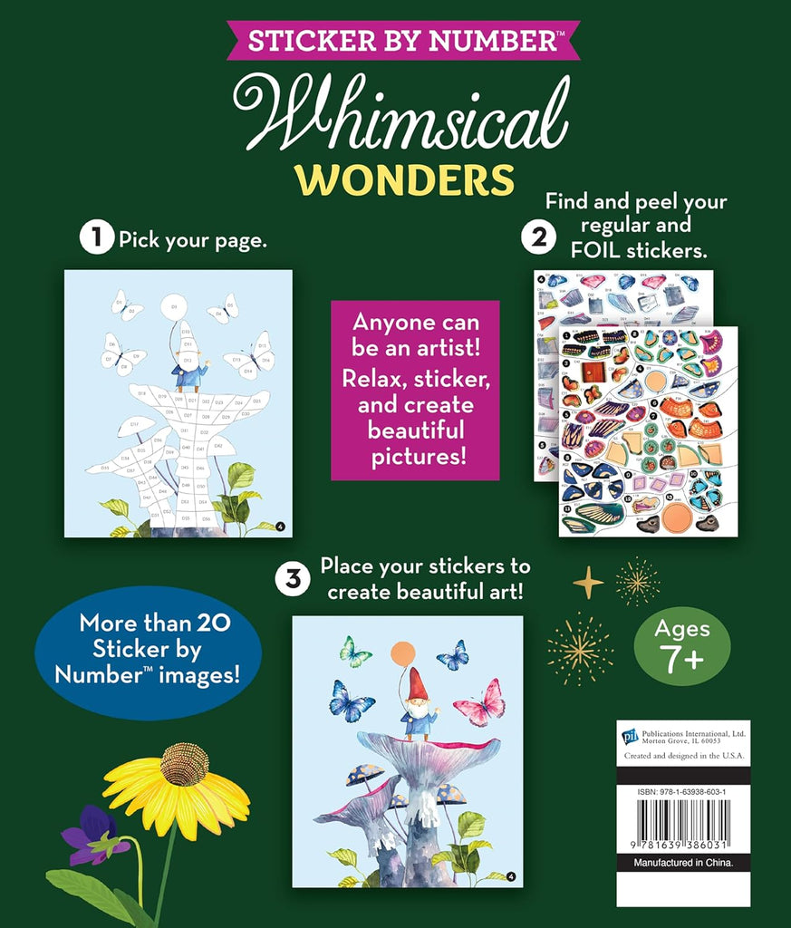 Brain Games - Sticker by Number: Whimsical Wonders (24 Images to Sticker): Includes 2 Foil Sticker Sheets to Complete Each Image!