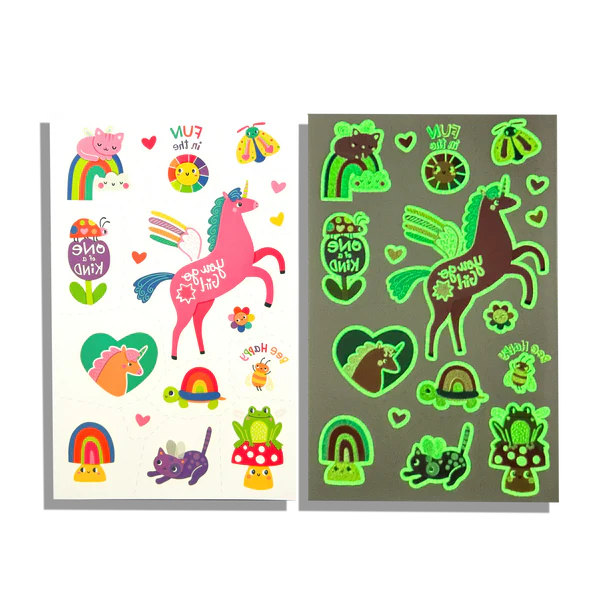 • Set of 3 tattoo sheets featuring glow-in-the-dark temporary tattoos