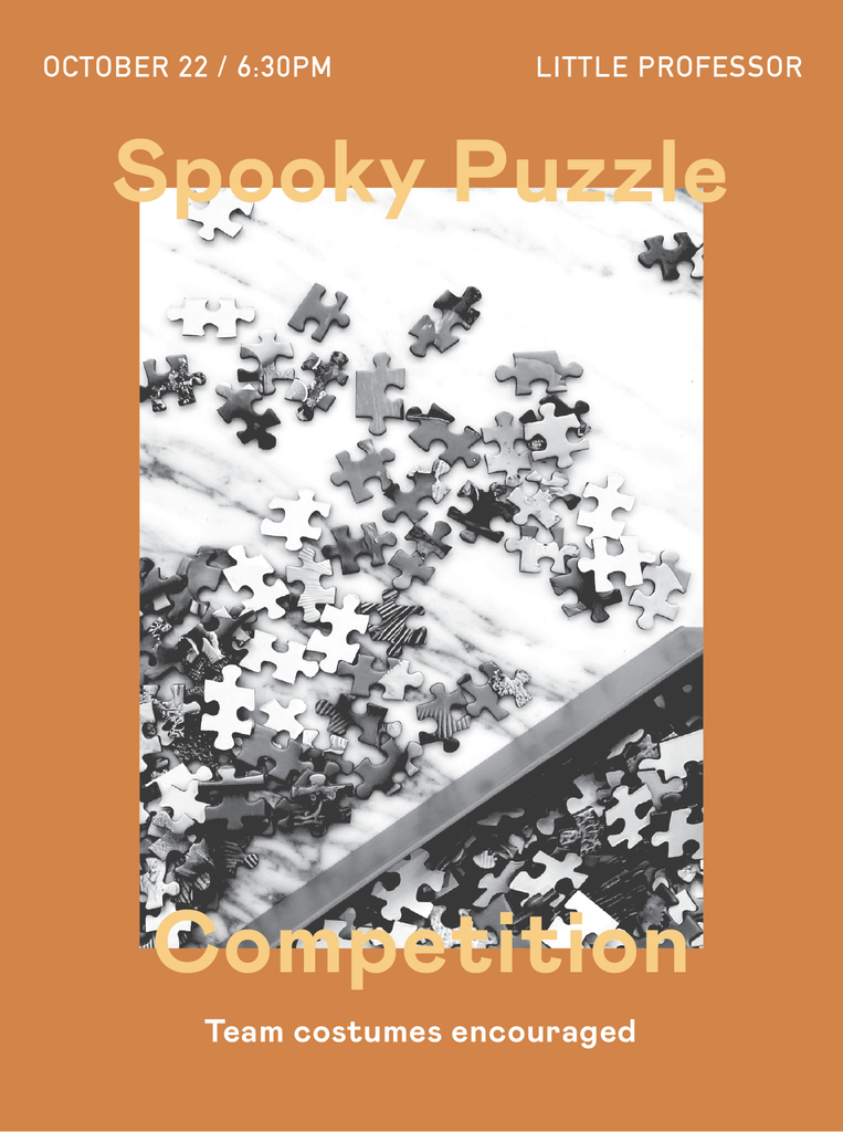 It's spooky season (and always puzzle season!), join us for a Halloween themed competition. Friendly team costumes are encouraged, and possibly rewarded ;). The competition includes an easy, medium and hard category! There will be one winning team from each level!